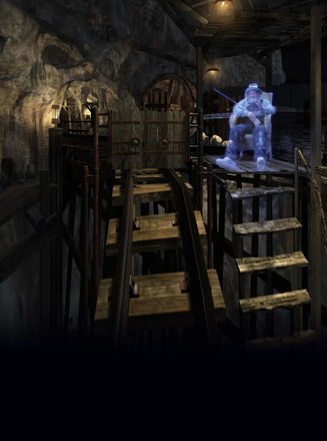 Hang on to your ten gallon hats as you plunge headfirst into an old, dilapidated gold mine that just happens to be haunted.